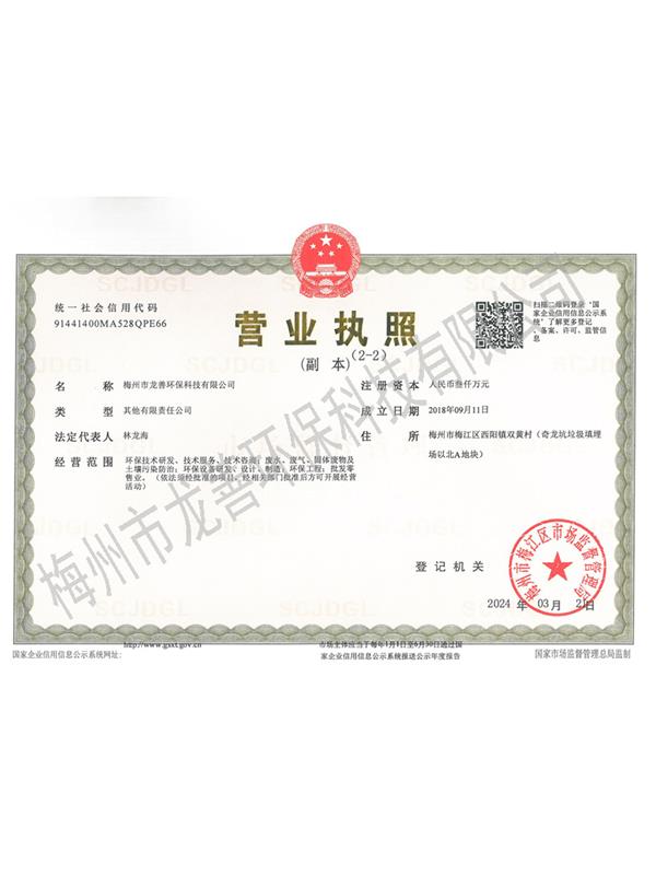 梅州市龍善環(huán)保科技有限公司為龍善環(huán)保股份有限公司(簡稱“龍善環(huán)保”)子公司。龍善環(huán)保于1995年12月成立,注冊(cè)資本為人民幣6,000萬元,總部位于深圳市南山區(qū)月亮灣大道2078號(hào)兆龍大樓16層。公司經(jīng)生態(tài)環(huán)境部、廣東省生態(tài)環(huán)境廳、深圳市生態(tài)環(huán)境局、深圳市交通運(yùn)輸委員會(huì)、深圳海事局等部門許可專業(yè)從事陸地和海洋環(huán)境保護(hù)產(chǎn)業(yè)的高科技民營企業(yè),主要經(jīng)營業(yè)務(wù)包括工業(yè)廢物收運(yùn)、資源化利用和無害化處理處置、海洋船舶污油水接收和集中處理處置、突發(fā)環(huán)境事故清污應(yīng)急處置等......